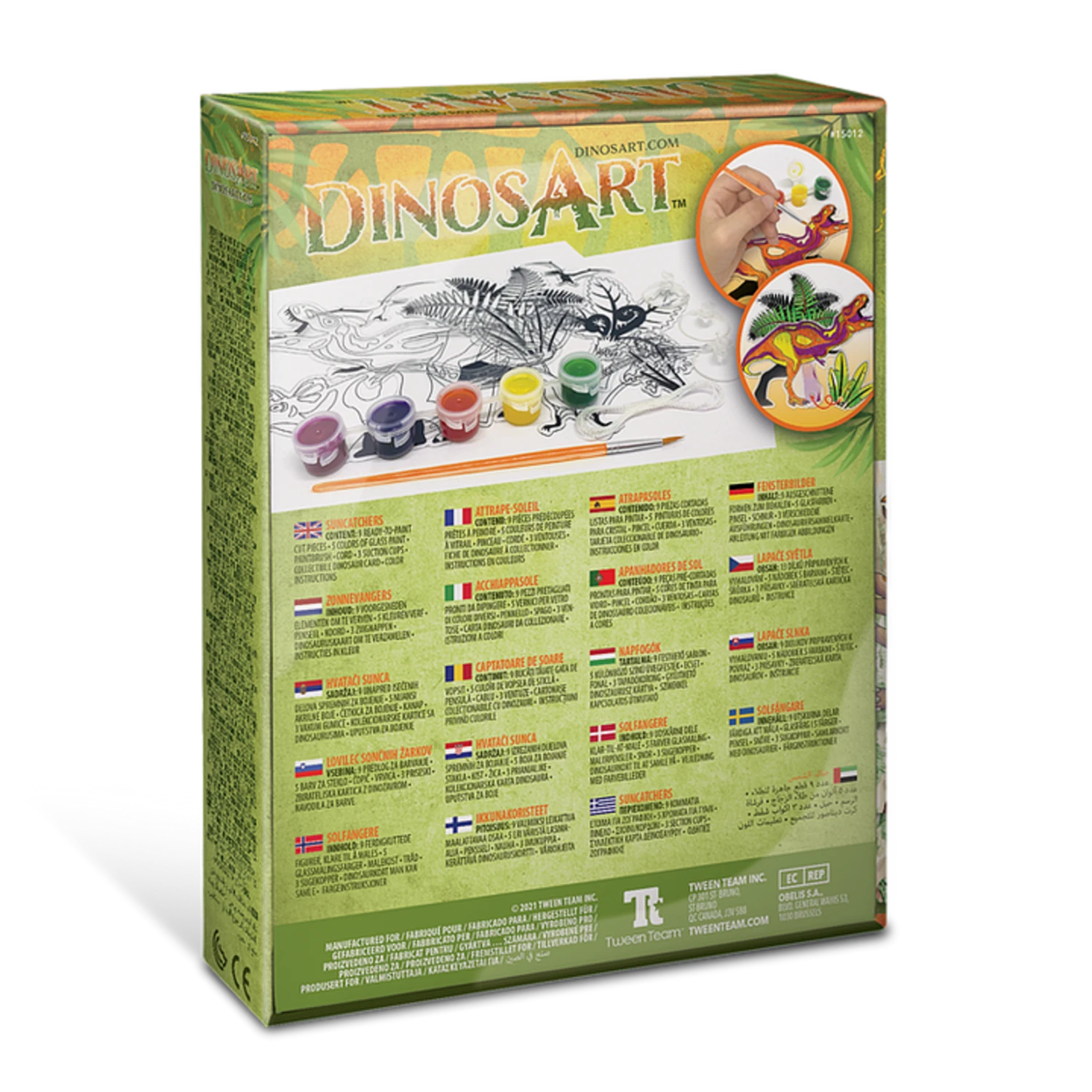 Great window art, This kit will make 3 dinosaur suncatchers. Colour in the cut parts and tie them to a suction cup, attached to windows or a mirror.