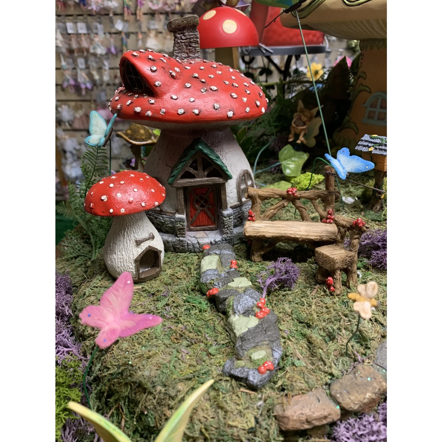 This lovely fairy house is part of the Fiddlehead range… suitable for indoor and outdoor use. A mushroom / toadstool fairy house makes a perfect accessory to any fairy garden.